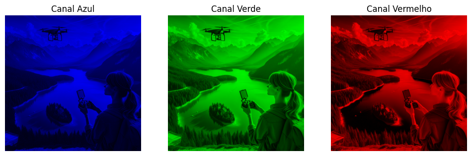 # Exibe cada canal individualmente em suas cores